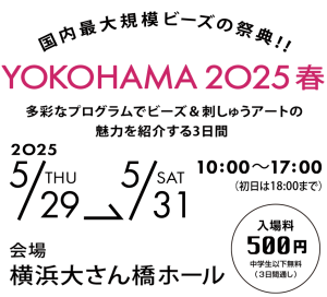 ビーズアートショーでは、私は、ビーズ刺繍とビーズステッチのキットの販売と、ビーズ刺繍ブローチとイヤーアクセサリーの完成品を販売させて頂きます。
